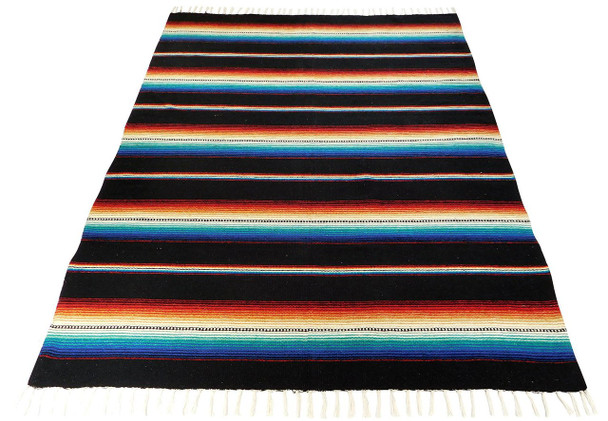 El Paso Serape Style Falsa Blanket. Classic Mexican Style Serape Pattern in Vivid Colors. Hand Woven
