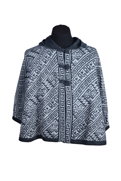 Alpaca Cape Open Style knit 100% Alpaca Fiber Cloak One Size Adult. Button down comfort hooded back.